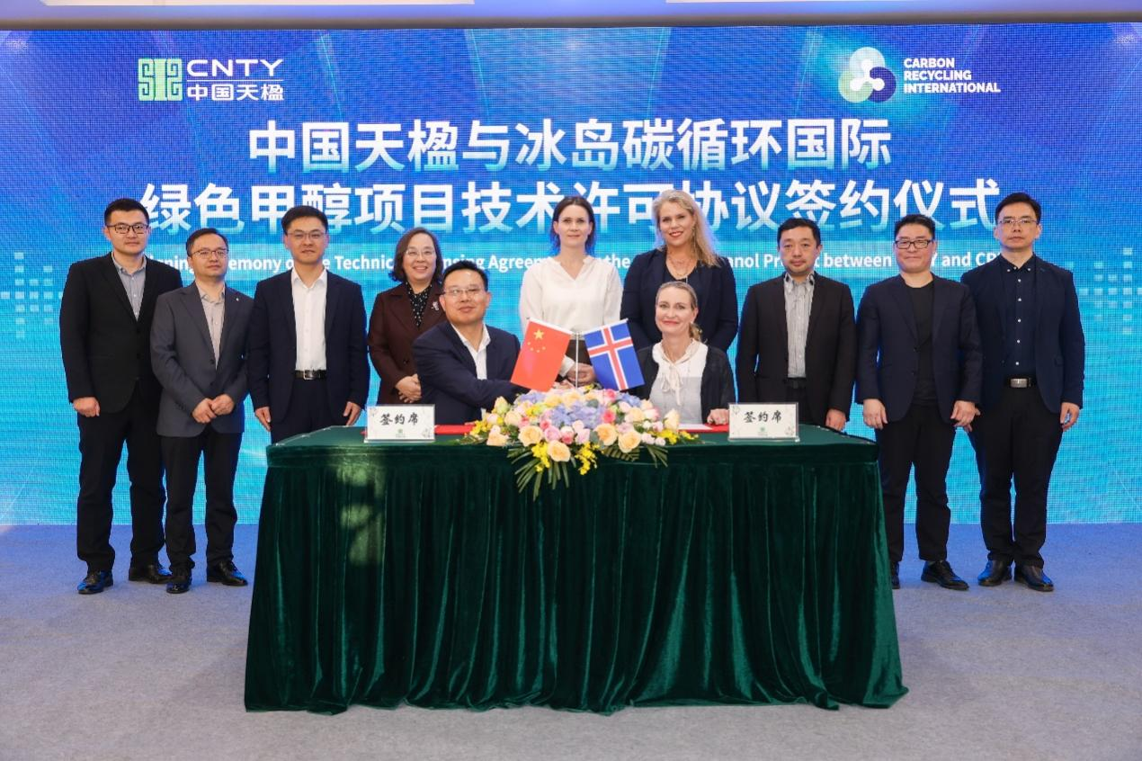 10月29日,中國天楹集團與冰島碳循環(huán)國際公司(CRI)綠色甲醇項目技術(shù)許可協(xié)議簽約儀式在江蘇省海安市舉行,中國天楹股份有限公司總裁曹德標(biāo),中國天楹股份有限公司技術(shù)代表付輝,CRI 首席執(zhí)行官洛特·羅森伯格(Rotte Rosenberg),冰島共和國駐中國大使館參贊裴英歌(Inga Dora Petursdottir),冰島環(huán)境、能源與氣候部部長格維茲勒于爾·索爾·索爾達松(Gudlaugur Thor Thordarson)出席。