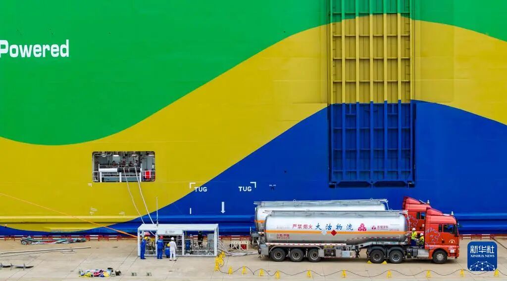 本次加注由中國石化燃料油銷售有限公司實(shí)施,所用甲醇產(chǎn)自內(nèi)蒙古,以廢舊輪胎和生物質(zhì)為原料,一次作業(yè)即可減排二氧化碳460噸。預(yù)計(jì)22日晚完成全部加注工作。